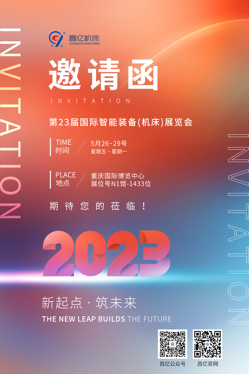無錫市昌億機床制造有限公司5月26一29號參加在重慶國際博覽中心舉辦的第23屆國際智能裝備(機床)展覽會,展位號N1館一1433位,歡迎各位同仁前來參觀指導!